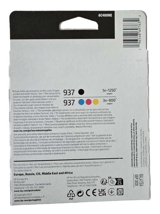 HP 937 B C M Y Multipack Printer Ink Cartridges